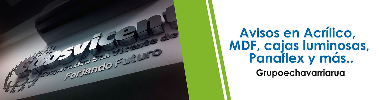 Indoor and outdoor advertising notices in Medellin different materials: Acrylic notices in Medellín, MDF notices in Medellín, light boxes in Medellín, Panaflex notices in Medellín, micro-perforated notices for vehicles, polystyrene notices, Signage in Medellín, Plates for inventories.