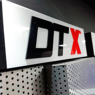 Notice light box reinforced in aluminum with full color printed Panaflex canvas, matte laminate and corporeal letters in high relief laser cut acrylic. Ideal to get out of the ordinary of traditional light boxes.